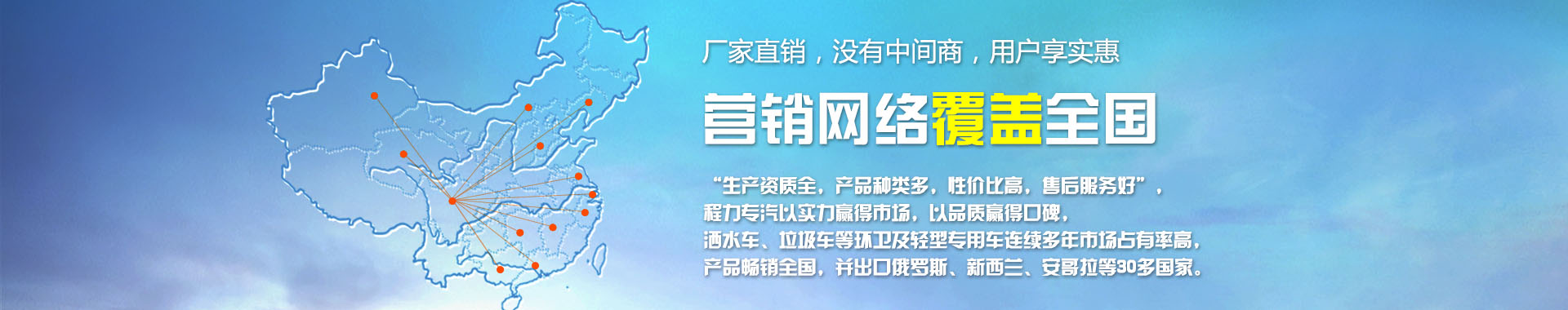 我公司致力于開(kāi)發(fā)生產(chǎn)銷售專用汽車為已任,為您量身打造方便實(shí)用,耐用的專用汽車,其主導(dǎo)品種有園林綠化灑水車、環(huán)衛(wèi)灑水車、油罐加運(yùn)油車、吸糞車、吸污車、擺臂、掛桶、密封式垃圾車、廂式運(yùn)輸車、消防車、半掛車、自卸車、水泥車、隨車吊等八大系列100多個(gè)品種300多個(gè)車型。同時(shí)批發(fā)東風(fēng)、解放、福田等各種二類底盤。目前我公司銷售網(wǎng)絡(luò)基本已覆蓋全國(guó)各地,具體如下。